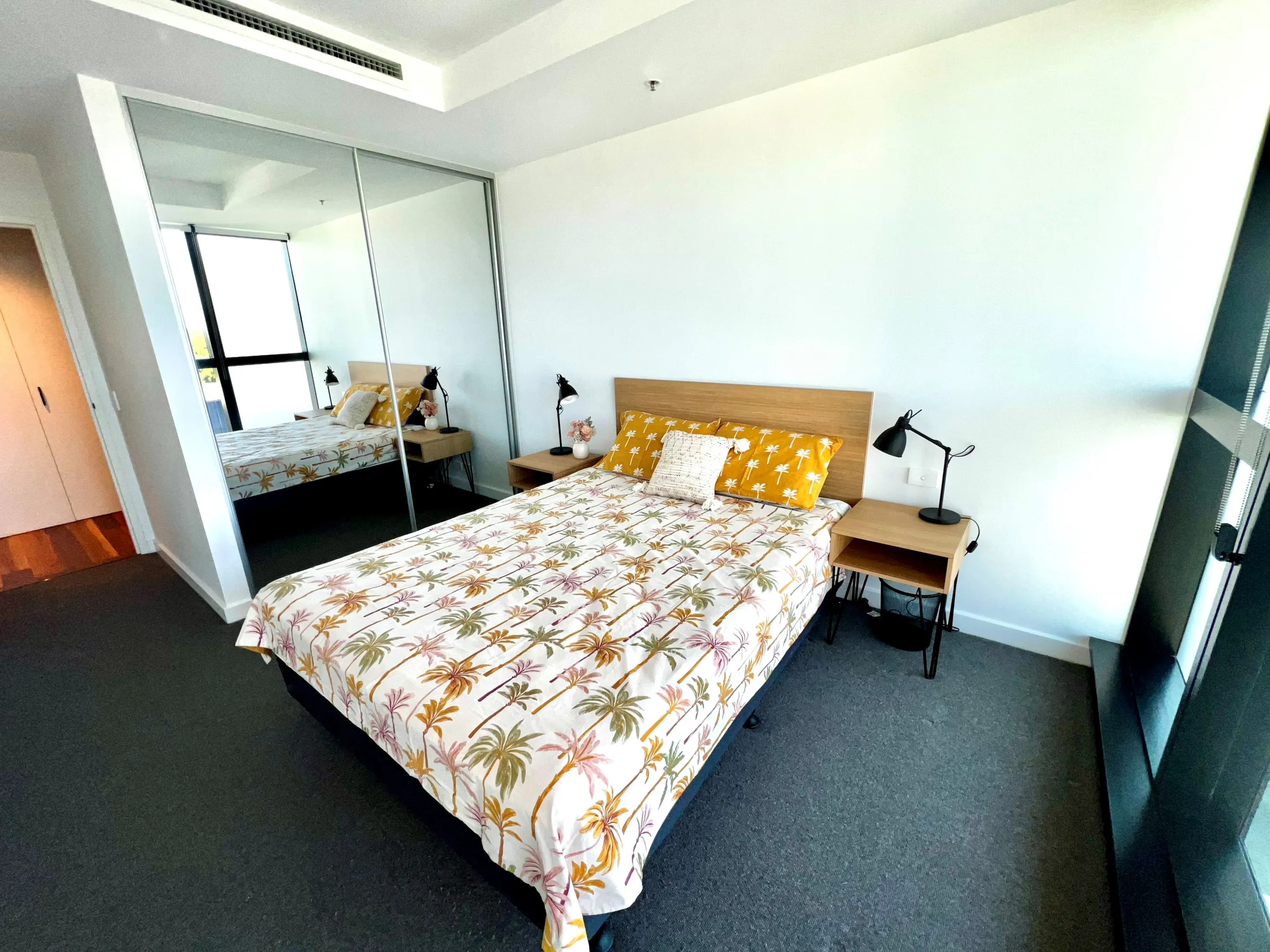 1 Bedroom Apartment complete with full sized kitchen - stove top, oven, microwave, full sized fridge and dishwasher. Open plan living room with dining table, couch, desk, TV and chair. Separated and private bedroom, with ensuite bathroom attachment, queen size bed and wardrobe. Balcony with outdoor setting included. Laundry equipment within apartment.