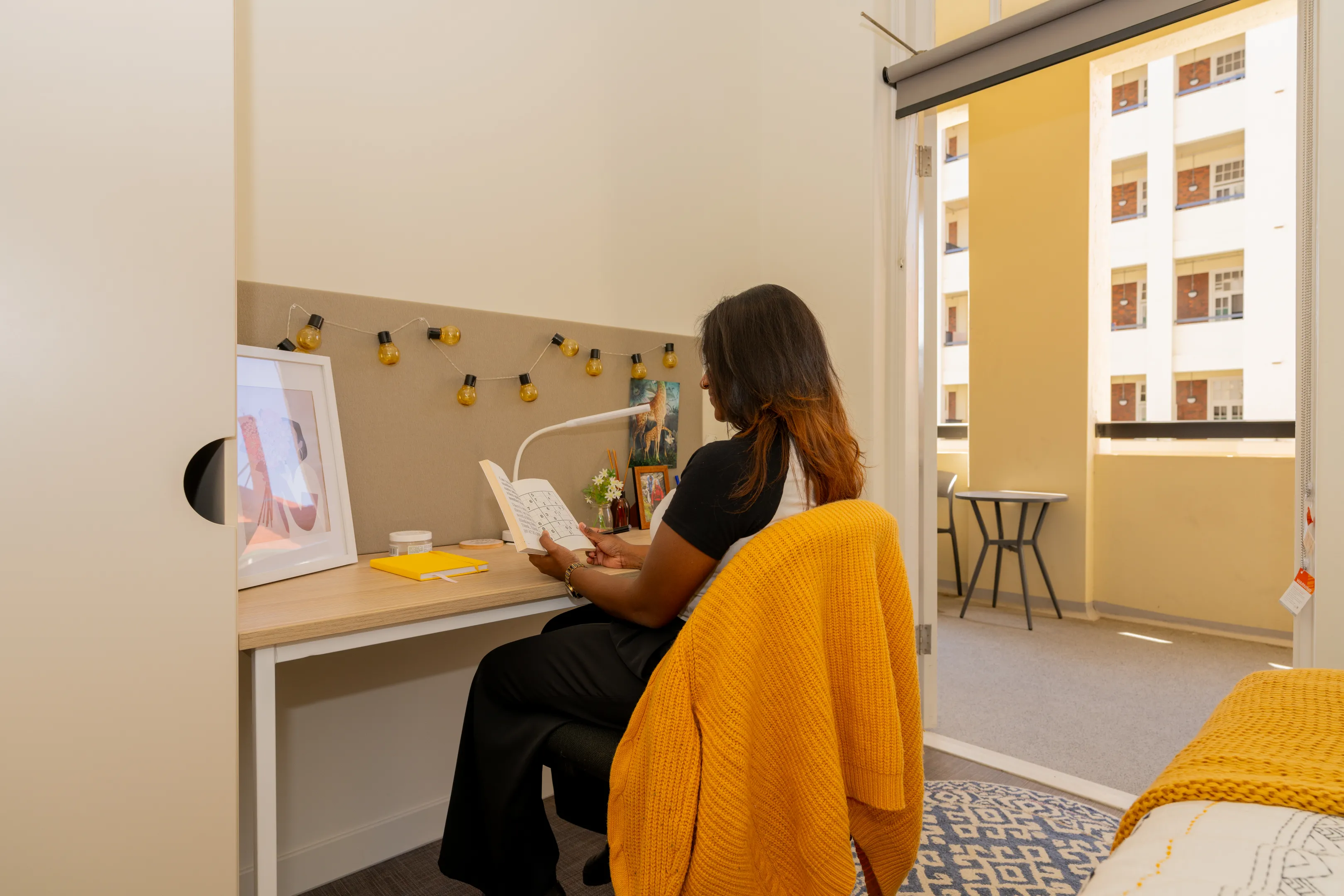 Single rooms in Lady Lamington are designed for one occupant. Each room is equipped with all the amenities required for comfortable living: a King Single Bed frame and mattress, a wardrobe and a study desk and chair.