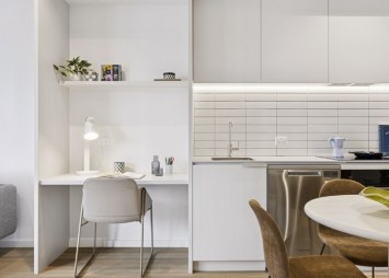 Our 1 bedroom apartments are perfect for living a convenient and comfortable city lifestyle, with furniture carefully selected to feel like home – right from the day you move in. This layout includes a built-in study desk providing a dedicated space for concentration, as well as your own private balcony. And with so many resident amenities available, you will have even more space to work, relax or have fun outside of your apartment.