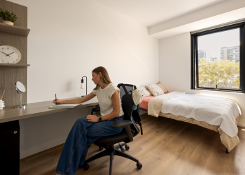 Enjoy the best outlook between levels 18-29 living in a High-Floor Studio. With natural light, great views, and all the essentials—your own double bed, kitchenette, study space, closet storage, and ensuite—it’s the perfect place to relax above the hustle. This is where all students thrive academically and socially!