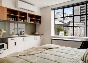 Set within the historic section of the property, the Heritage Studio Premium blends classic character with the convenience of modern student living. With more room than a standard studio, it’s a unique space for students who want something special while studying in the heart of Auckland.