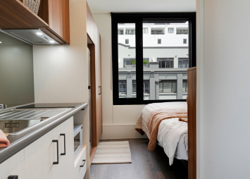 The Studio Premium Accessible provides all the comfort and convenience of a premium studio, with thoughtful design features that make the space more inclusive. Ideal for students who want to live independently in a private, self-contained unit with layouts that support greater accessibility and ease of use.