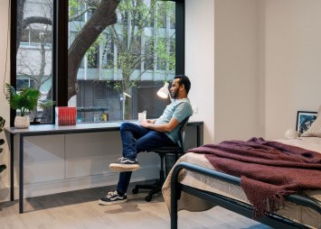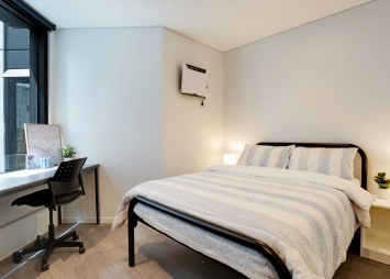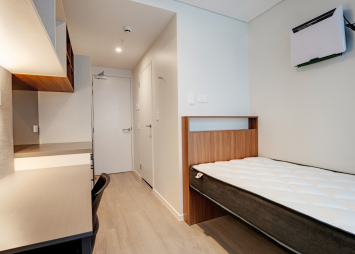 The Double Premium is a spacious private room designed for one student, featuring a comfortable double bed instead of a king single. Perfect for those who prefer extra room to stretch out, it offers all the privacy of a studio with a bit more comfort built in.