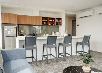 The Four Bedroom Apartment offers the best of both worlds: your own secure bedroom and ensuite, plus a shared kitchen and lounge for catching up with flatmates. It’s a great choice if you’re looking for privacy when you need it, alongside the fun and connection of group living in the city. Our deluxe apartment offer air conditioning and some of the best views in the building.