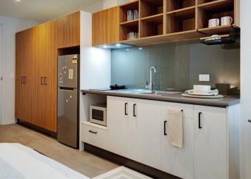 The Studio Deluxe offers an elevated version of studio living, providing more room to study, rest, and enjoy life in the city. With a self-contained layout, this option is perfect for students who prefer their own space, combining privacy with the convenience of being close to campus and the central city. Our deluxe rooms offer air conditioning and some of the best views in the building.