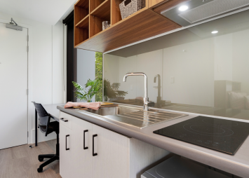 The Studio Deluxe Accessible provides all the comfort and convenience of a premium studio, with thoughtful design features that make the space more inclusive. Ideal for students who want to live independently in a private, self-contained unit with layouts that support greater accessibility and ease of use. Our deluxe rooms offer air conditioning and some of the best views in the building.