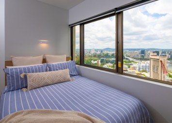 Designed with student life in mind, UniLodge Brisbane City features generous communal spaces throughout the building that support both study and social living. Residents can enjoy a range of shared facilities including lounges, shared laundry, curated study rooms, gym and yoga area, communal dining areas and terraces, all created with a calm, contemporary aesthetic. The building has a strong focus on community, with large open spaces that make it easy to relax, connect and unwind between classes.